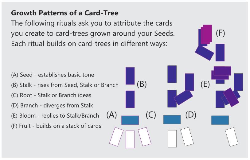 Within are a series of seasonal-themed rituals for growing and knitting a deck of cards together. Each year is a self-contained cycle for growing a themed Card-Tree, then curating the selection of cards made for long-term inclusion into the deck.